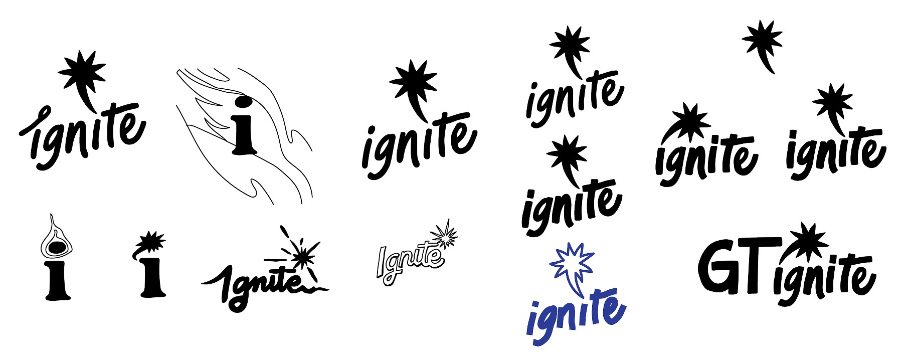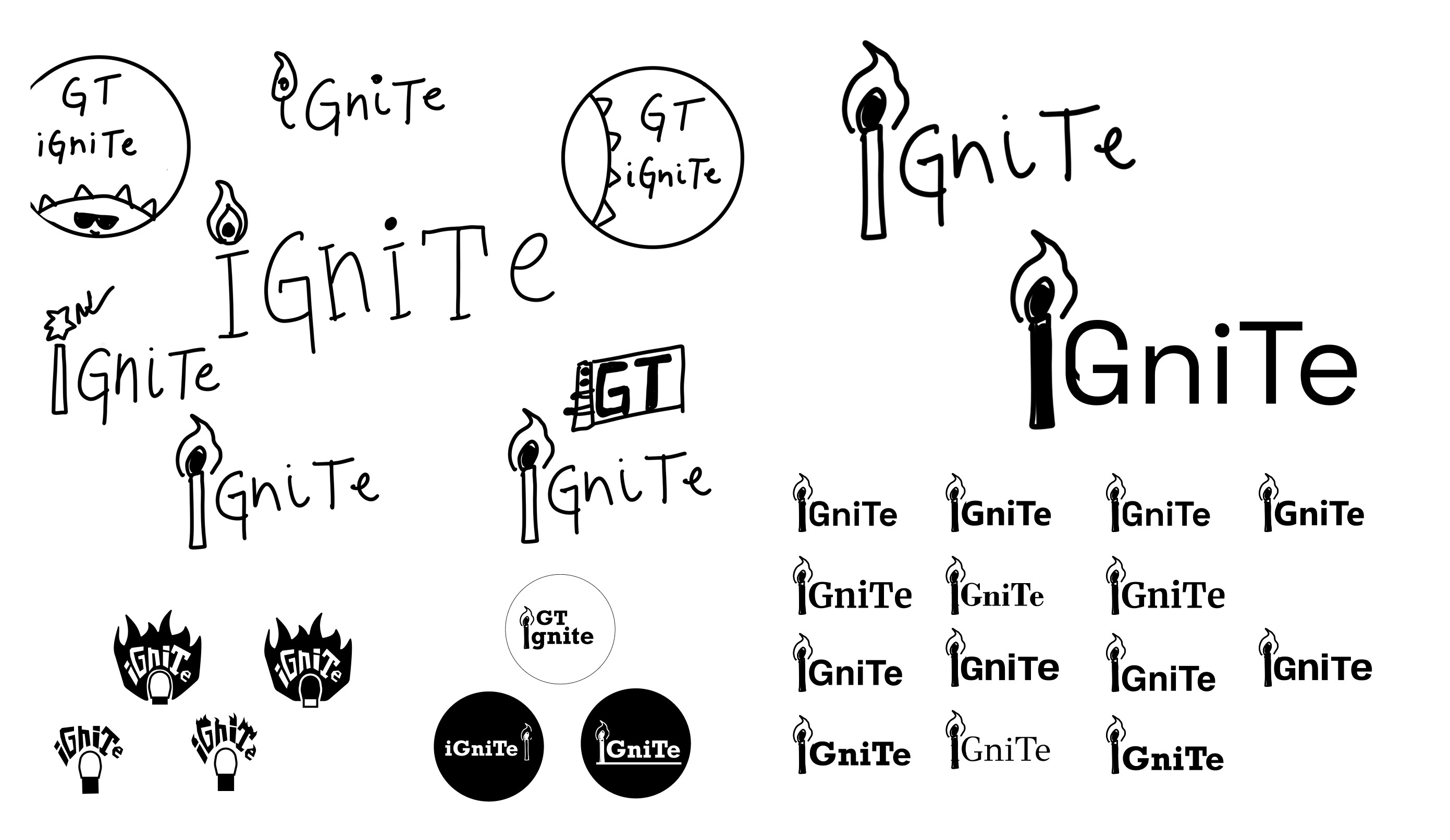 The ideation phase involved extensive brainstorming and sketching to explore potential logos, typography, and color palettes. I experimented with various design directions, drawing inspiration from Georgia Tech’s student culture and the play on words of "Ignite". This process helped refine core elements that would later define the final brand identity.