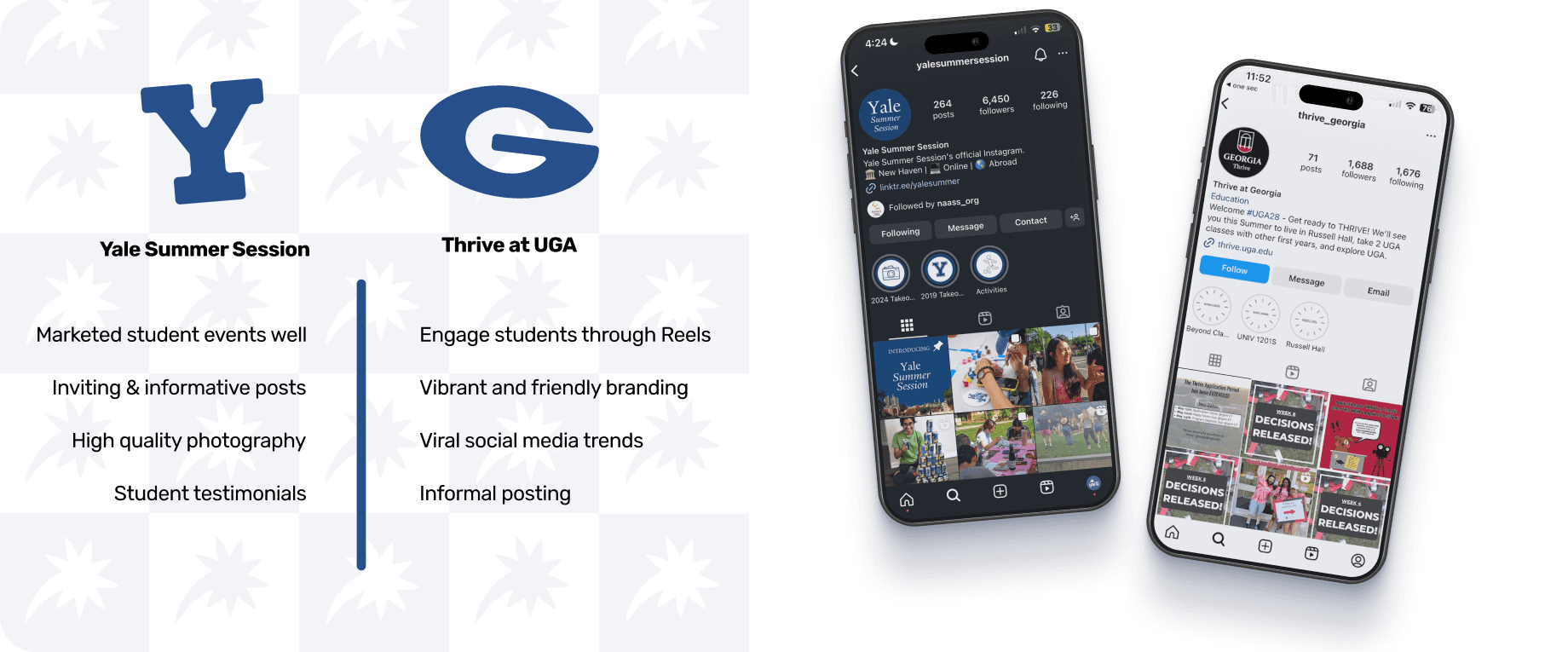 A competitive analysis was conducted to assess how similar academic programs approach branding and engagement. By analyzing visual identities, messaging strategies, and social media presence, I identified gaps and opportunities for Ignite to stand out. These insights helped shape a bold and modern brand that better resonated with prospective students.